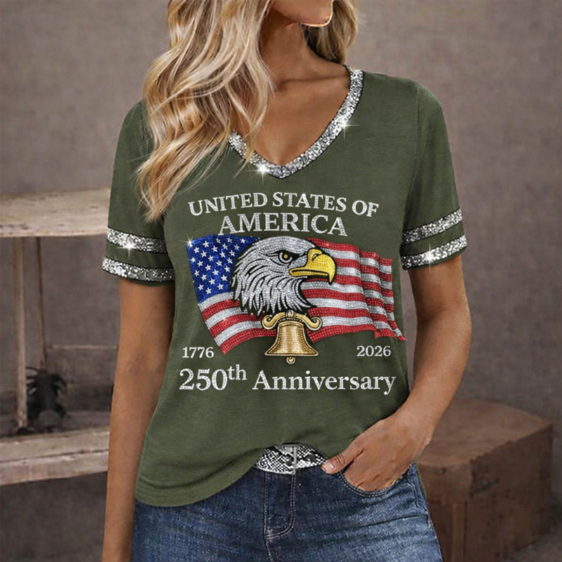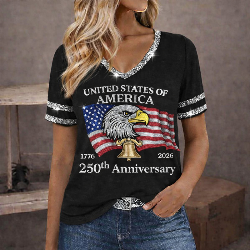 Women'S Casual American 250th Anniversary Print V-Neck T-Shirt
