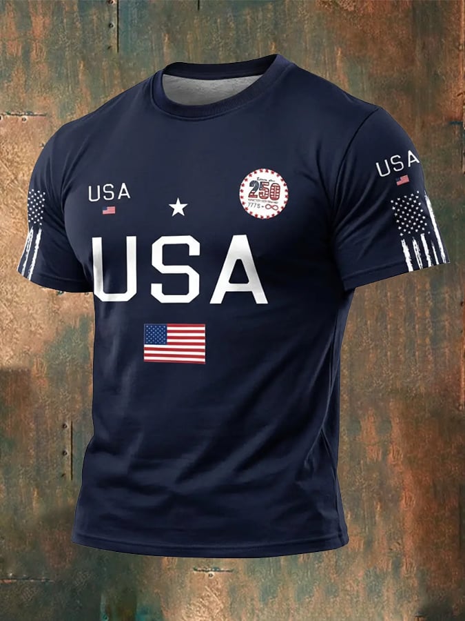 Men's Casual USA 250th Anniversary Printed Short-Sleeve T-Shirt