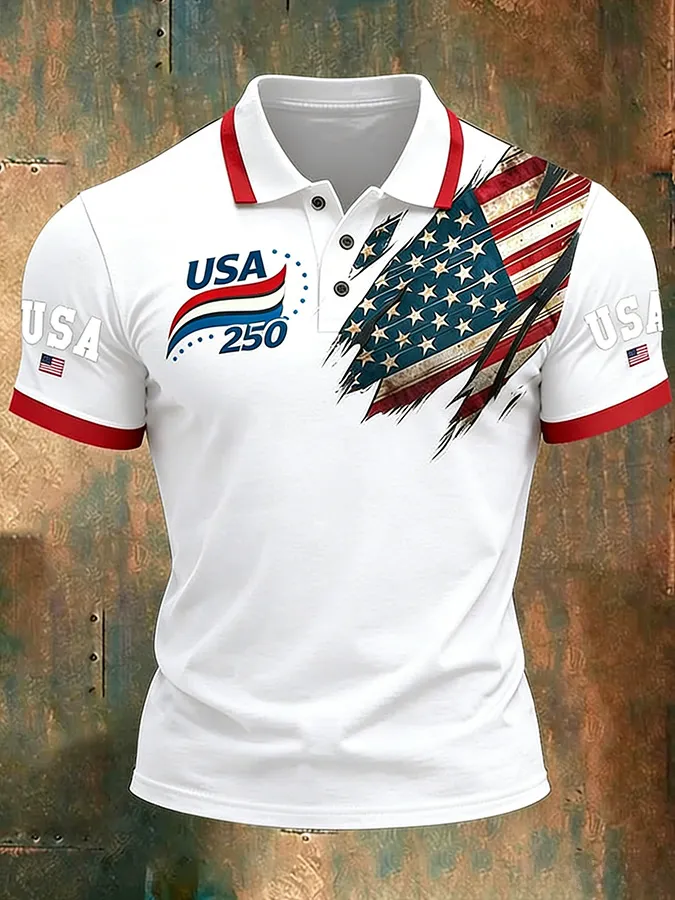 Men'S Retro Patriotic Independence Day 250Th Anniversary Polo Shirt