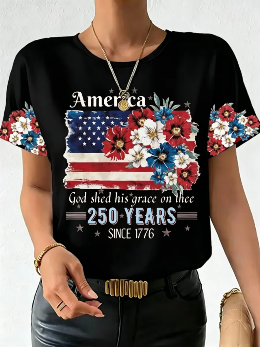 Women's American 250Th Anniversary Commemorative Pattern Casual Short Sleeved T-Shirt