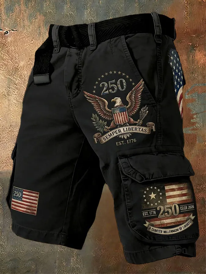 Men'S Retro American Independence Day Anniversary Printed Workwear Shorts (Excluding Waistband)