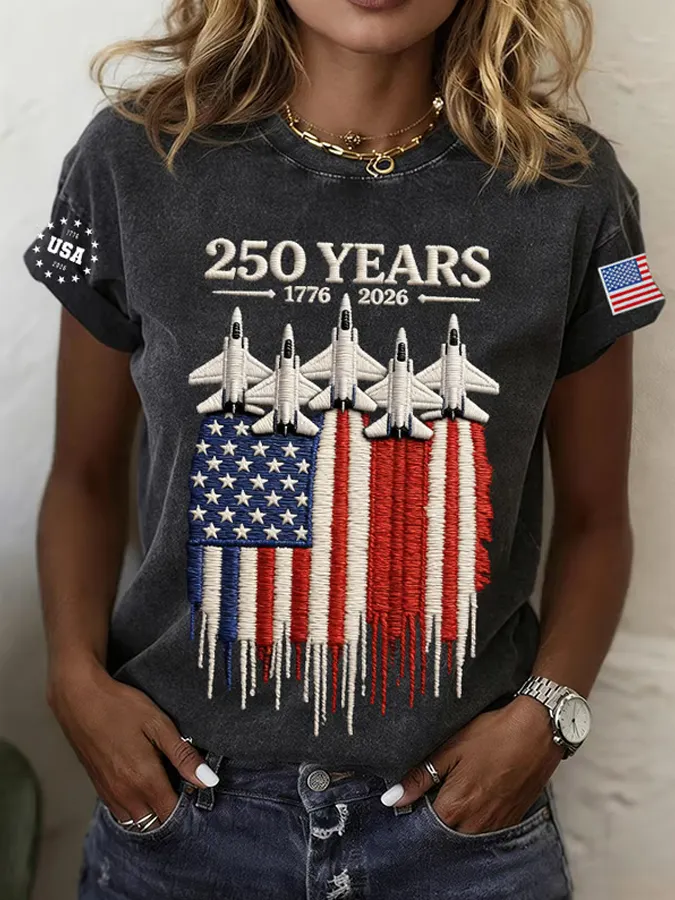 Women'S Retro American Independence Day 250Th Anniversary Printed Round Neck Short Sleeved T-Shirt