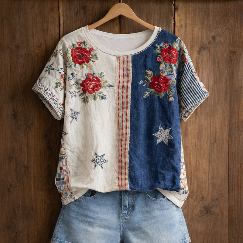 Women's 250th Anniversary Patchwork Pattern T-Shirt