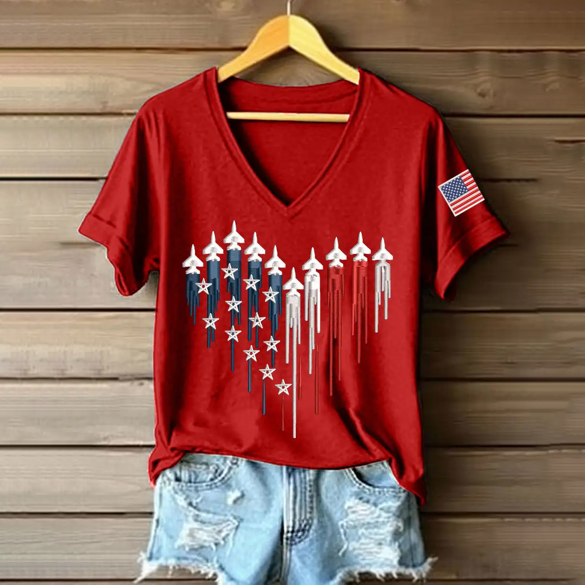 Women's 250th Anniversary Art Print Casual V-neck T-Shirt