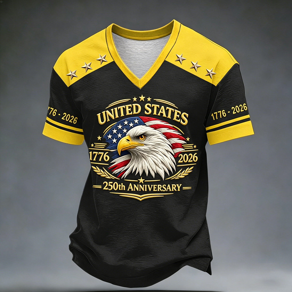 USA 250th Anniversary 1776-2026 Patriotic Eagle V-Neck Jersey T-Shirt