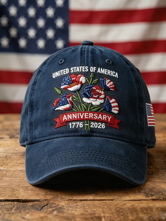 Unisex USA 250th Anniversary Floral Embroidered Washed Baseball Cap