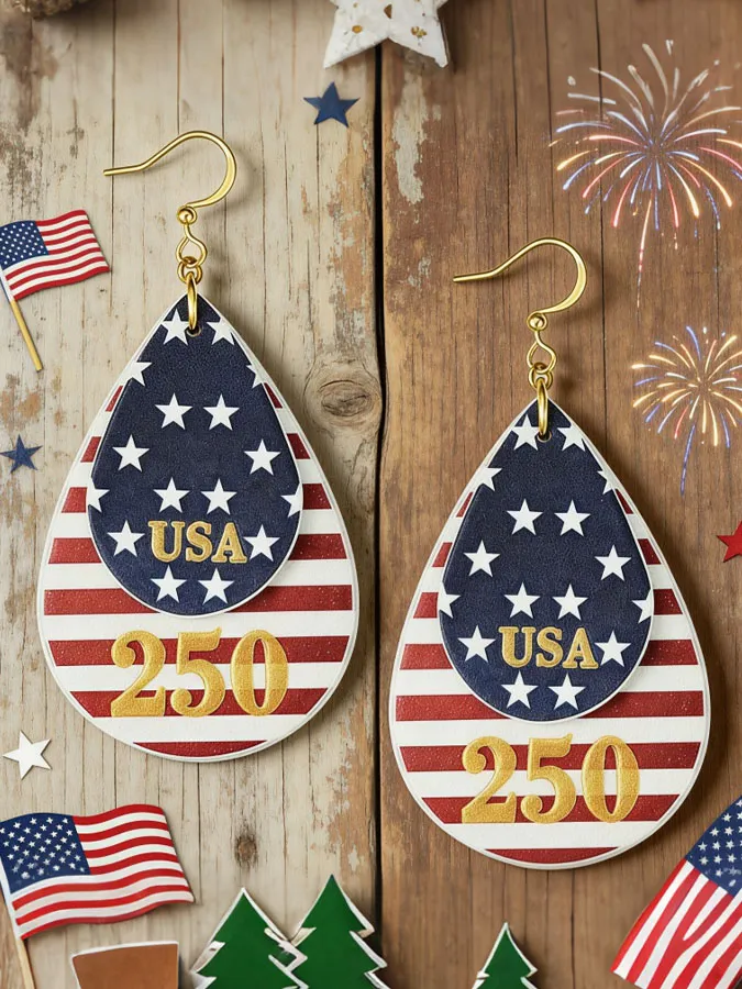 Women'S Independence Day 250Th Anniversary US Flag Striped Pentagram Leather Double Leather Earrings