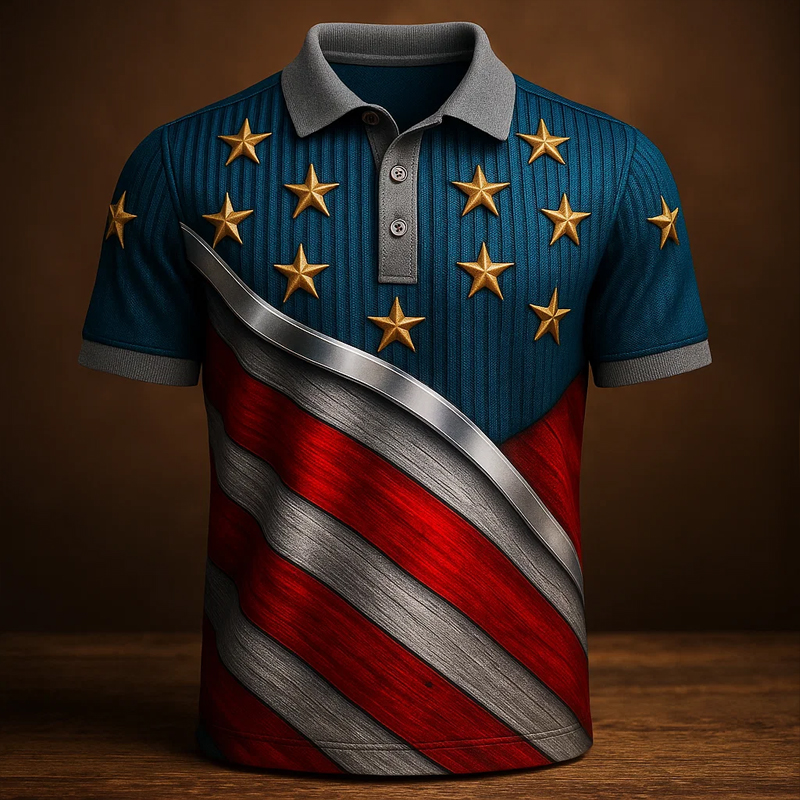 Men's Art Patriotic Print Casual Polo T-shirt