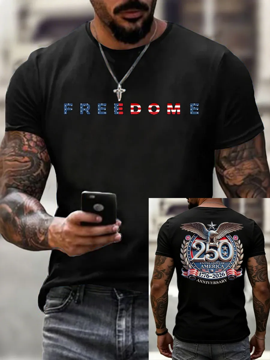 Men's 250Th Anniversary Free Printed Round Neck Short Sleeved T-Shirt