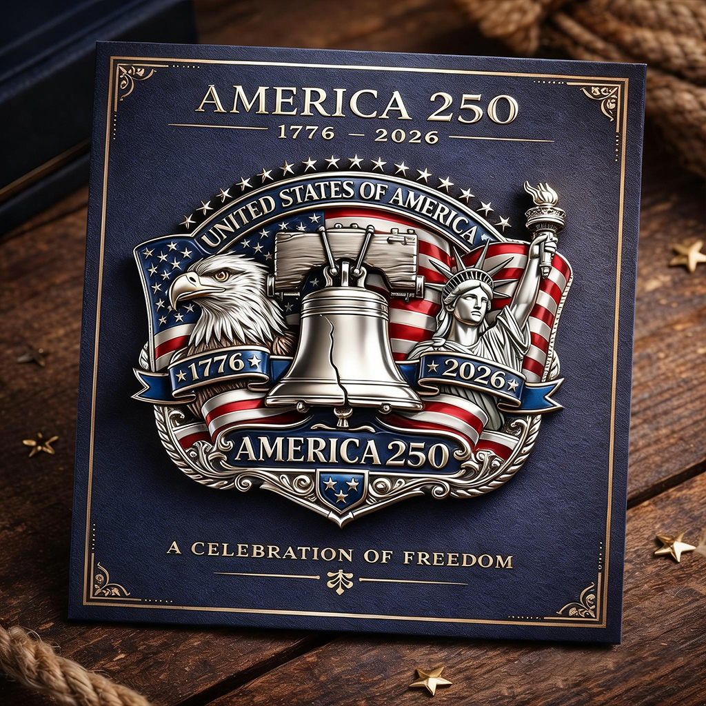 Marked with “1776 – 2026” and “America 250”, honoring the Semiquincentennial milestone. - ⭐ Classic Americana Accents