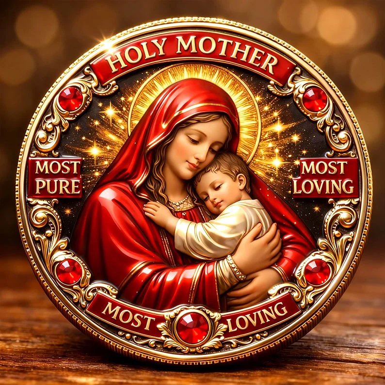 This is a sacred devotional coin — created for those who place their trust in the Holy Mother’s love, purity, and protection.
