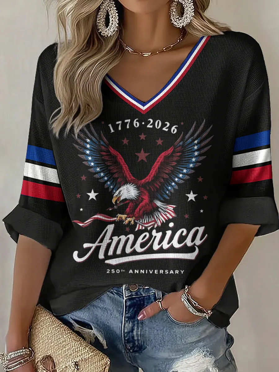 Eagle V-Neck Top For 250Th Anniversary Of Freedom In The United States