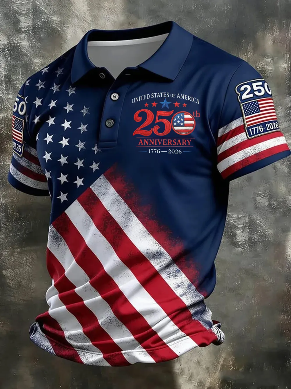 Unisex Casual 250Th Anniversary Celebration Short Sleeved Polo Shirt