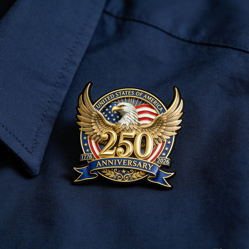 To celebrate the historic milestone of the United States' 250th founding anniversary, we proudly present this commemorative pin—designed to embody freedom, strength, and national pride. Adorned with a striking eagle emblem, a waving American flag, and the iconic "1776–2026" inscription, this pin is more than just an accessory; it is a statement.