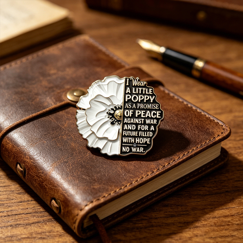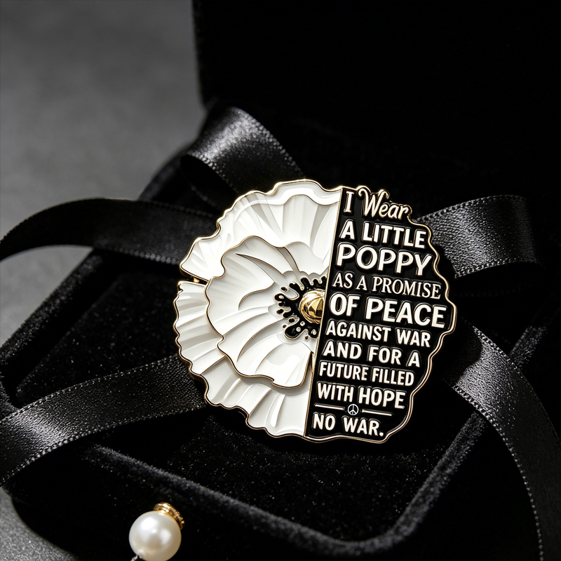 Wear a message that speaks beyond words. This elegant white poppy pin represents a powerful commitment to peace, remembrance, and a future free from conflict. Inspired by the enduring symbolism of the white poppy, it honors all lives affected by war while advocating for compassion, unity, and non-violence.