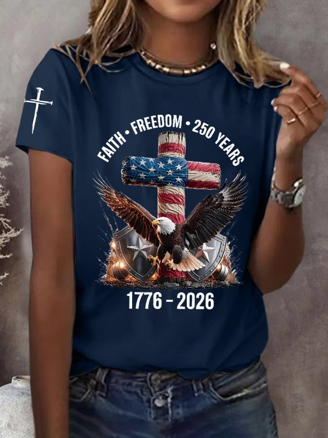 Women's 250th America Anniversary Casual Printed Crew Neck T-Shirt