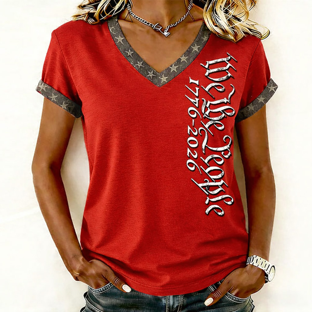 Women's 250th Anniversary Art Print Casual V-neck T-Shirt