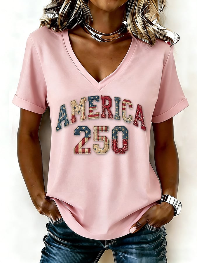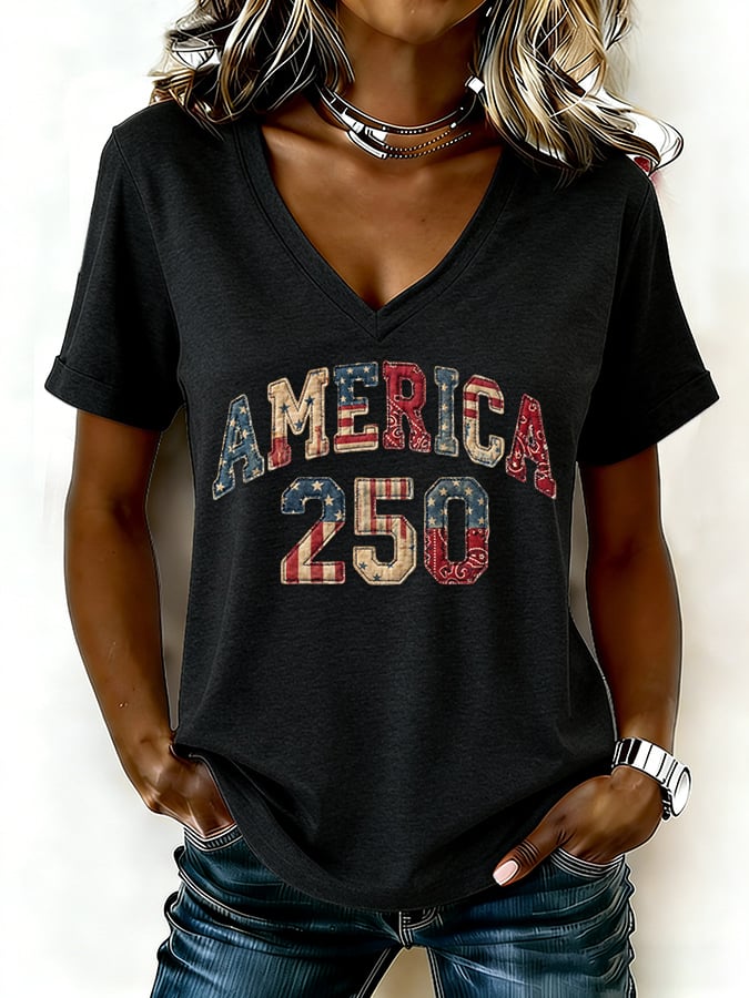 Women's casual retro American 250th anniversary T-shirt