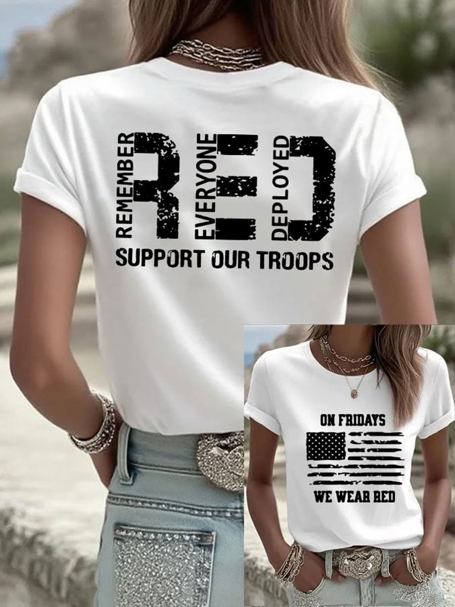 Women's Red Friday Print Casual T-Shirt